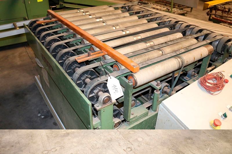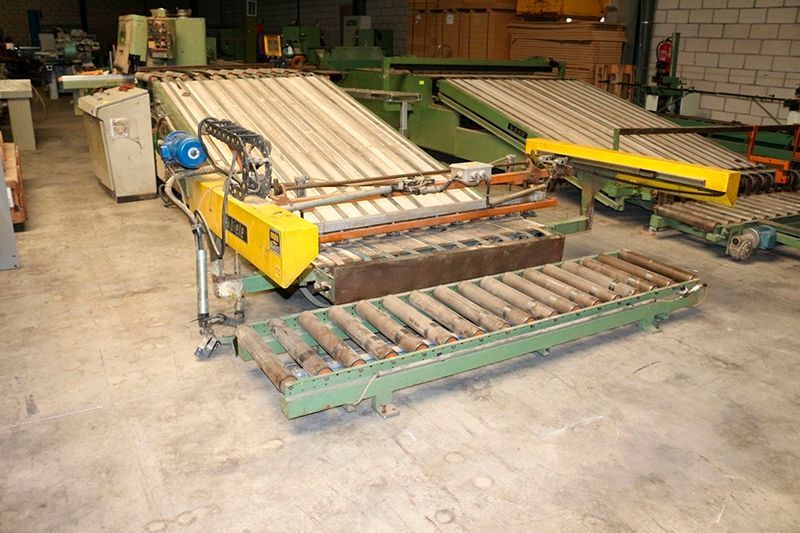 Descargador de piezas + mesa de rodillos para apilar , Utilización en líneas de cepillado, lijado, escuadrado de molduras , puertas y tableros