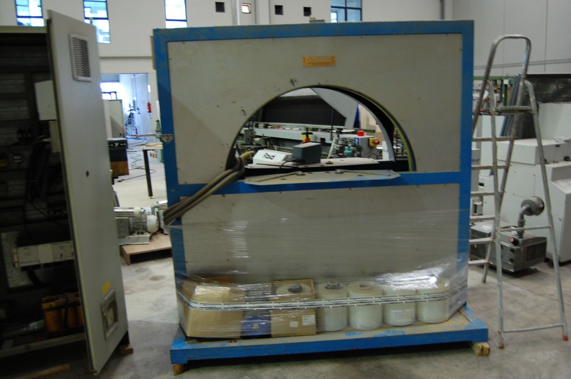 ARO PORTABOBINAS. Es el dispositivo de rotaci6n sobre el cual va montada la bobina de film estirable .El aro porta bobinas está montado sobre cinco rodamientos y va accionado por un motor eléctrico con freno incorporado, una correa trapezoidal, un rodillo fijo y otro tensor.