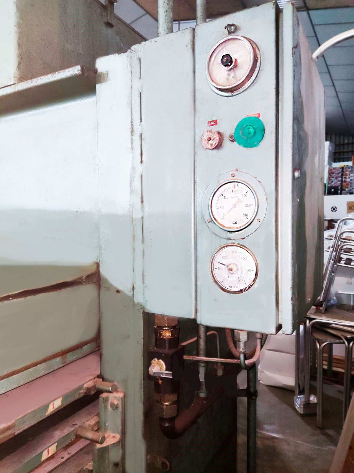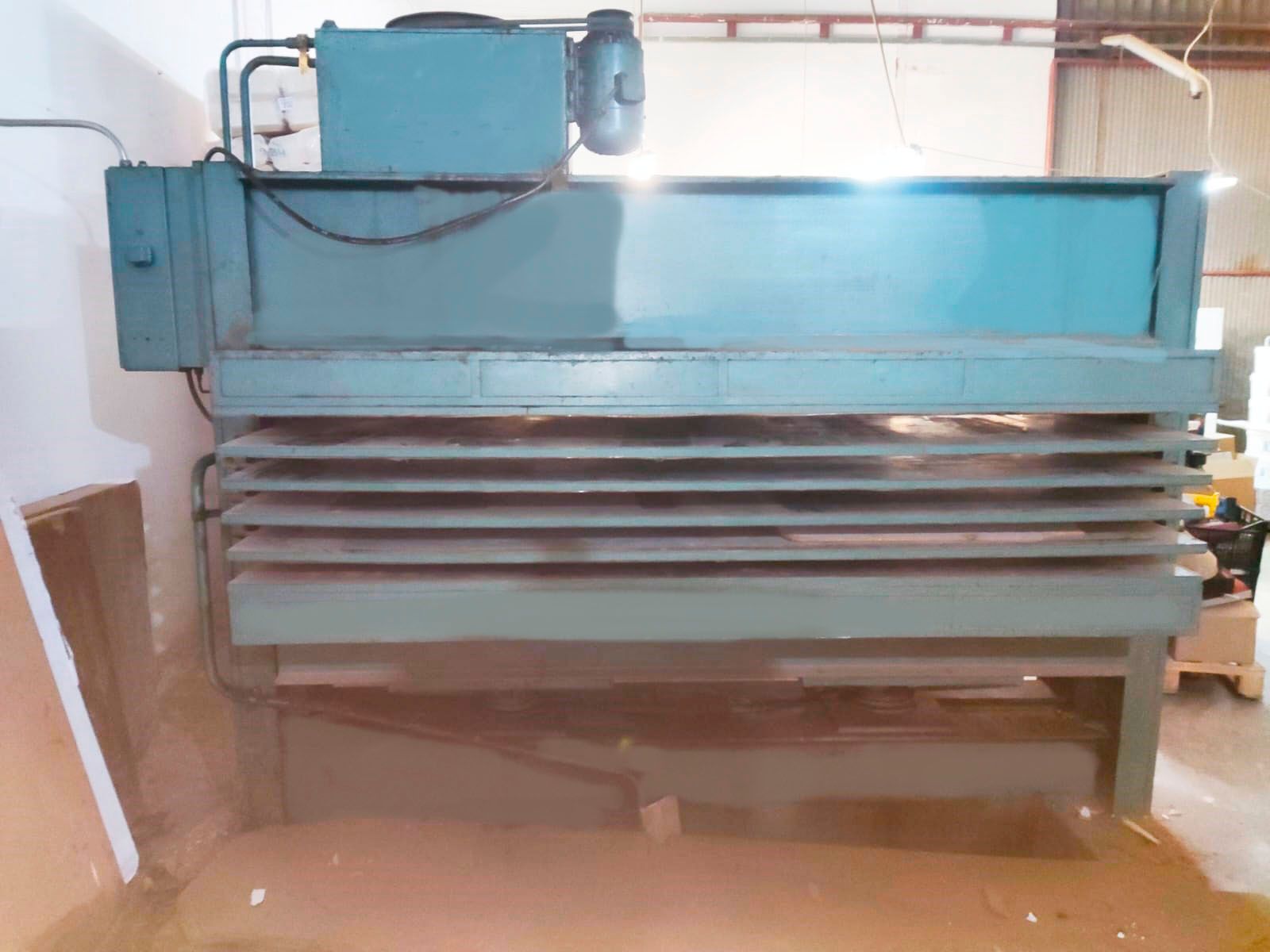 Platos calientes 5 huecos , platos semi - sólidos , capacidad de los platos 2700 x 1400 mm lleva 2 pistones de 220 mm c/u que le permite , Presión Max 7 Kg cm2 , perfecto estado como nueva, ajuste de los platos hidráulico ,medio de transmisión del calor : aceite térmico