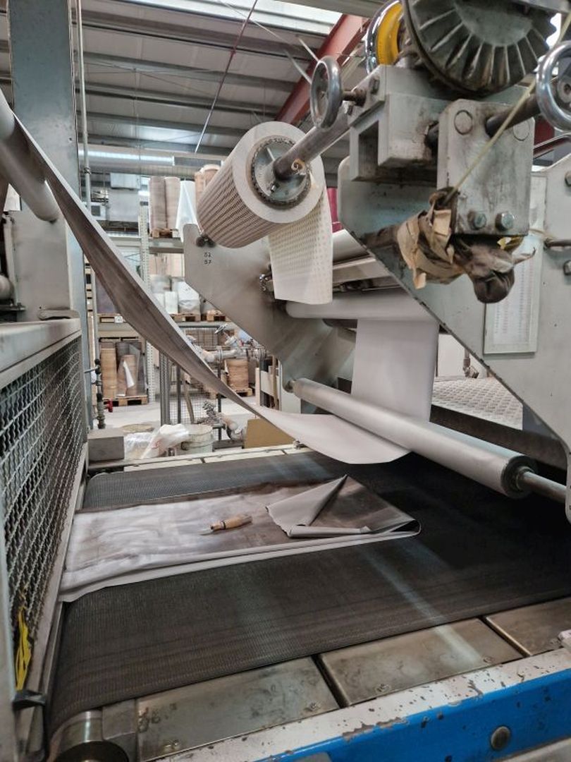 - Calandra de laminación EKM, D = 500 mm + estación de desbobinado de película + estación de separación + línea de transporte de cinta con puente de operación para FVE